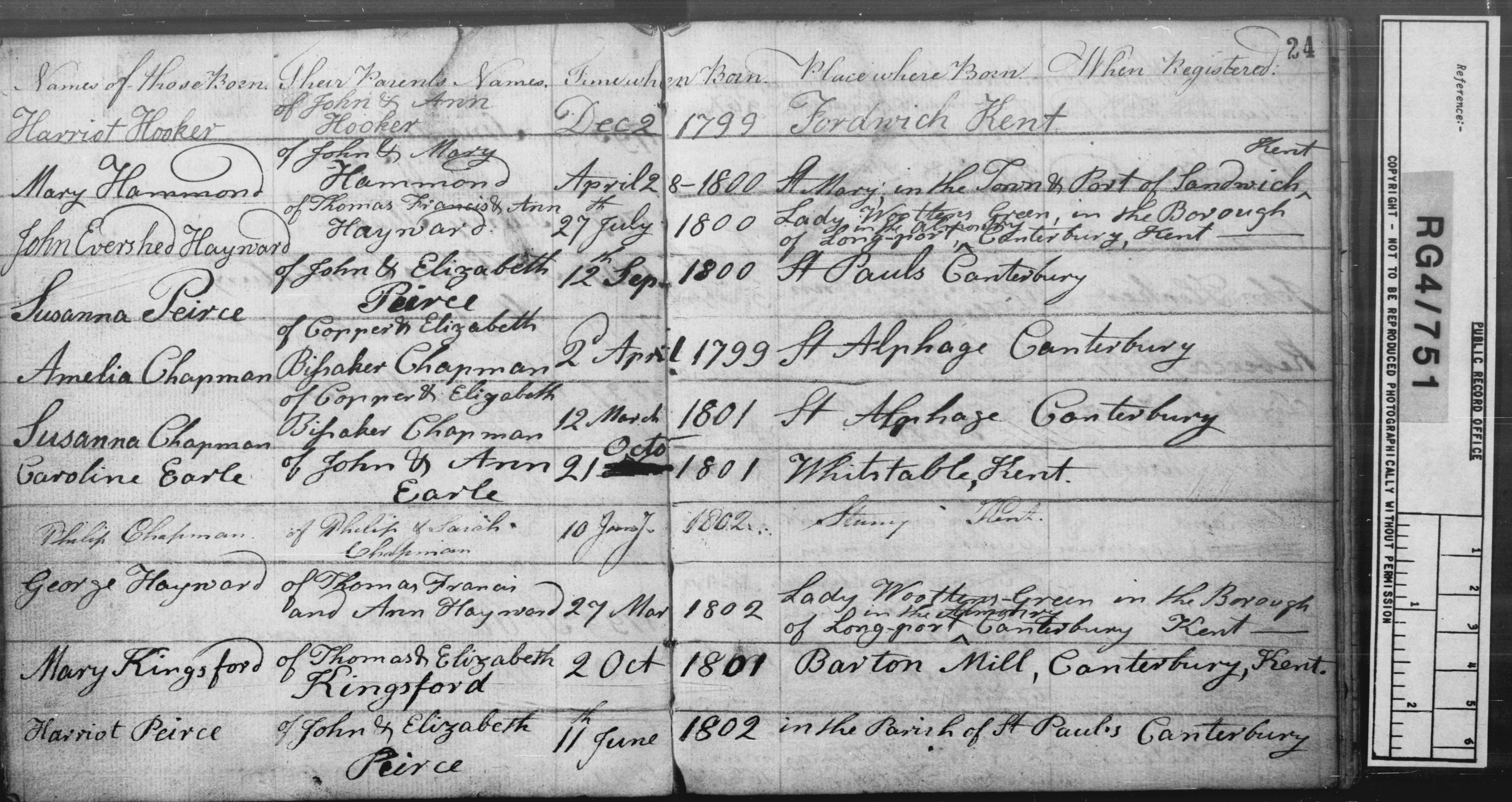 Baptisms in the Parish of Littleham cum Exmouth in the County of Devon.