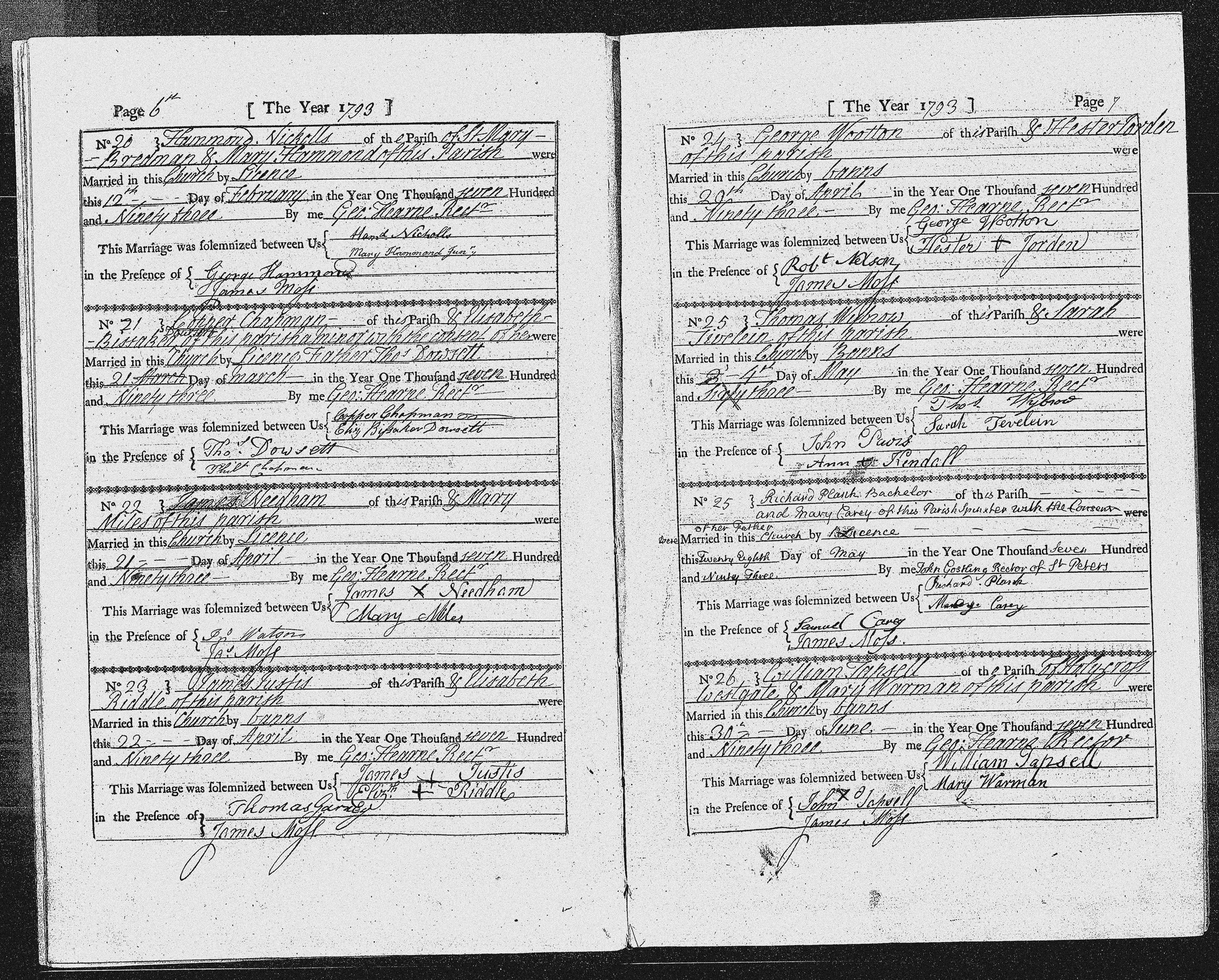 This marriage was Solemnized between us Copper Chapman and Elizabeth Bissaker Dowsett