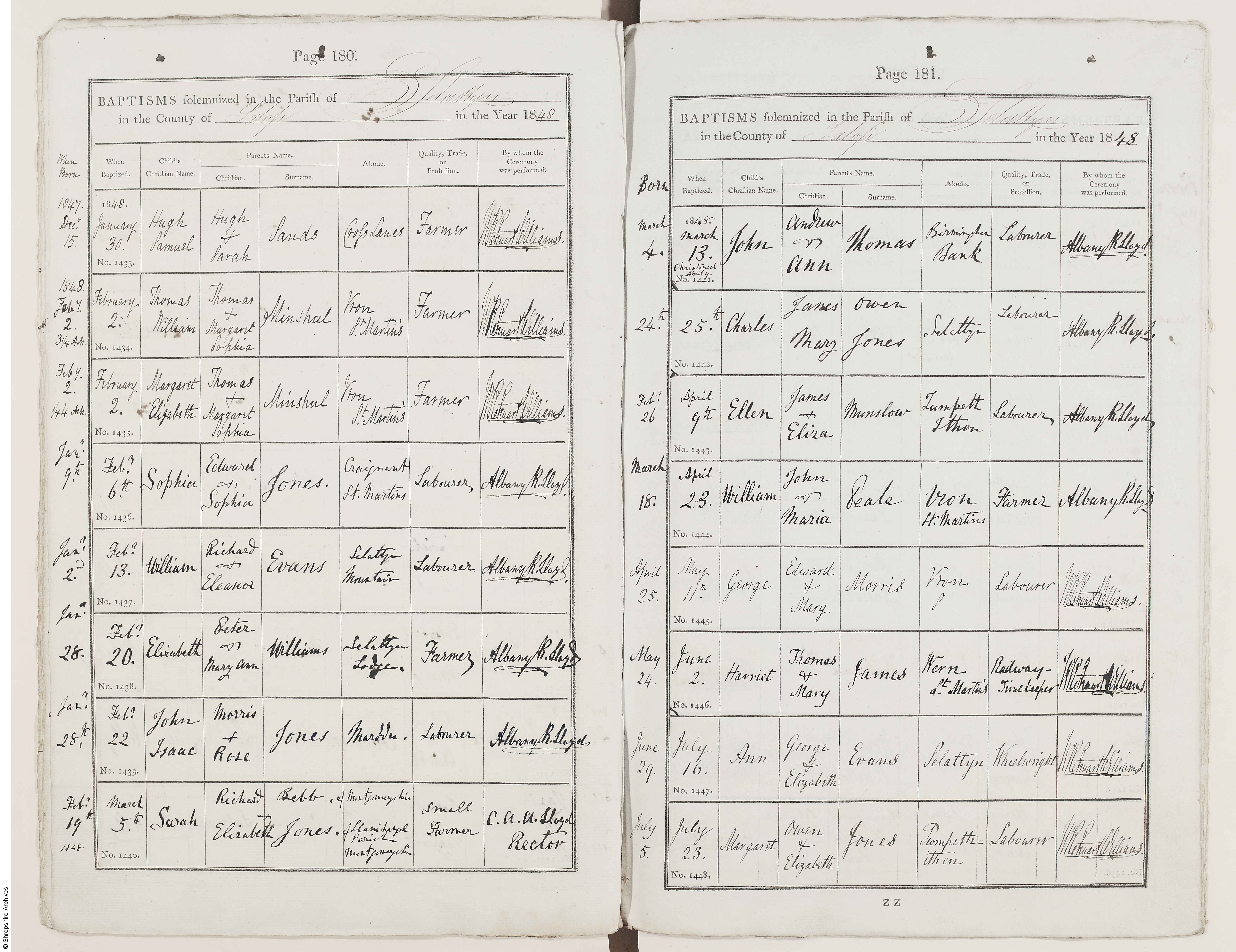 Baptisms solemnized in the Parish of Selattyn in the County of Salop in the Year of 1848.