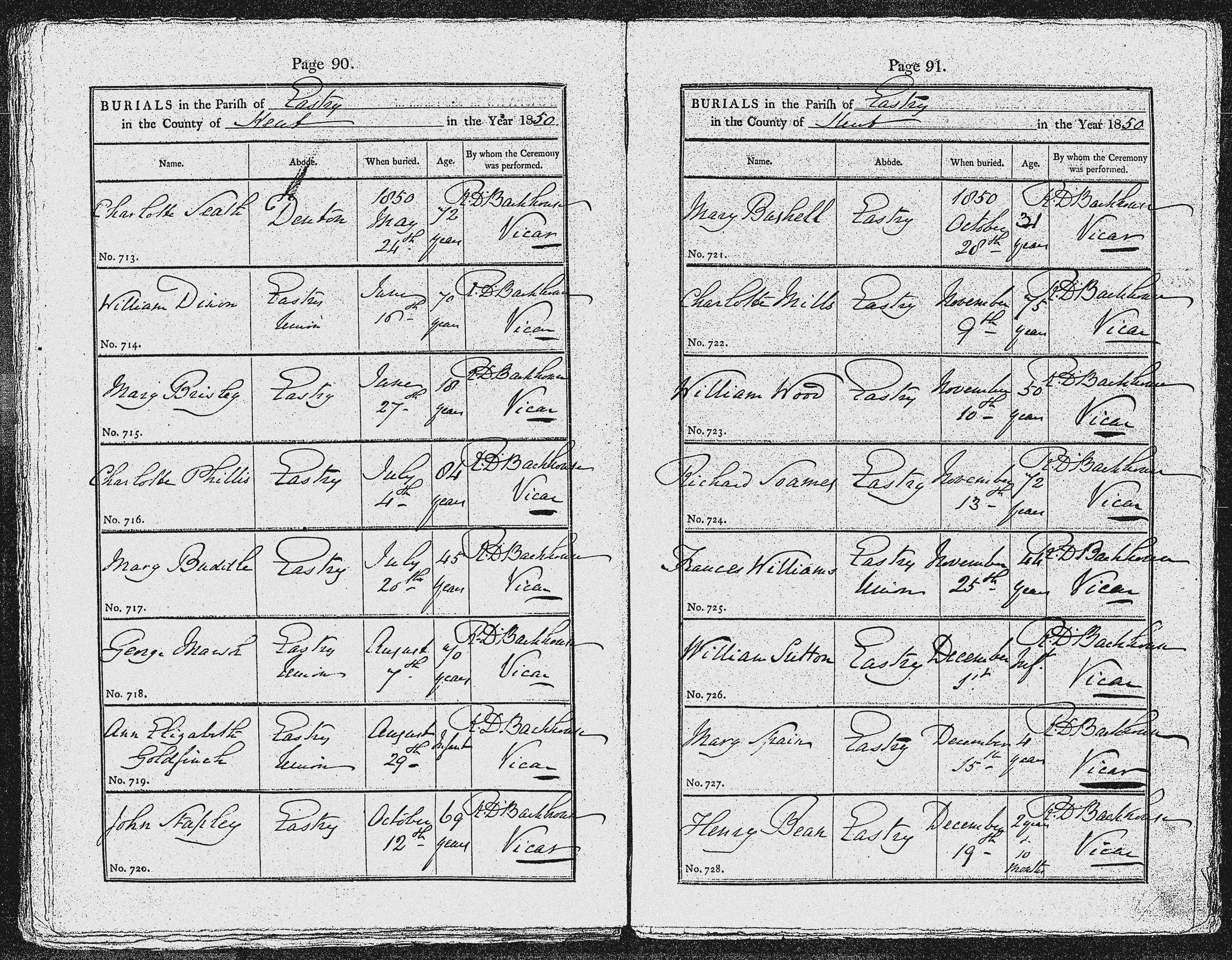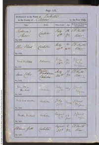 "Ann Tapscott the wife of Charles Tapscott, Labourer, died in the Parish of Culmstock on the 10th day of December 1830 aged 59 years, and was buried in the Protestant Dissenters Ground at Prescott, Devon 19th of December 1830. Registered by me William Gabriel, Protestant Dissenting Minister at Prescott, Devon"