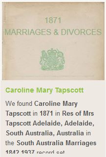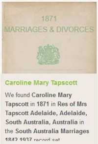 After the ceremony about 60 guests met at the residence of the bride's parents, Oladdie, where they were received by Mrs. Davill. A sumptuous breakfast was subsequently partaken of, the table being effectively decorated with pink and wihite roses and fern asparagus. The usual toasts were honored. In the evening a reception was held, when, about 70 guests assembled, and dancing, singing, and games were indulged in. Mr. George Poden acted as M.C. The music was ably supplied toy Miss E.A. Tapscott (sister of the bridegroom, who played the 'Wedding March,' and Messrs. A. Arthur, F. F. Smedley, S. Hook, and G. Chapman. The happy couple then left for Adelaide, amid showers of confetti and rice, where the honeymoon was spent. The bride travelled in a blue cloth costume and large white hat. The happy couple will make their home at Spring Farm, Pekina. They were the recipients of many useful and costly presents."