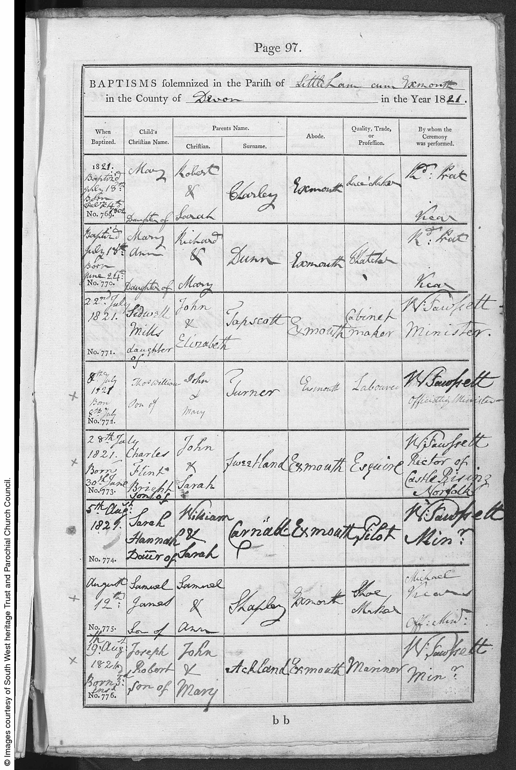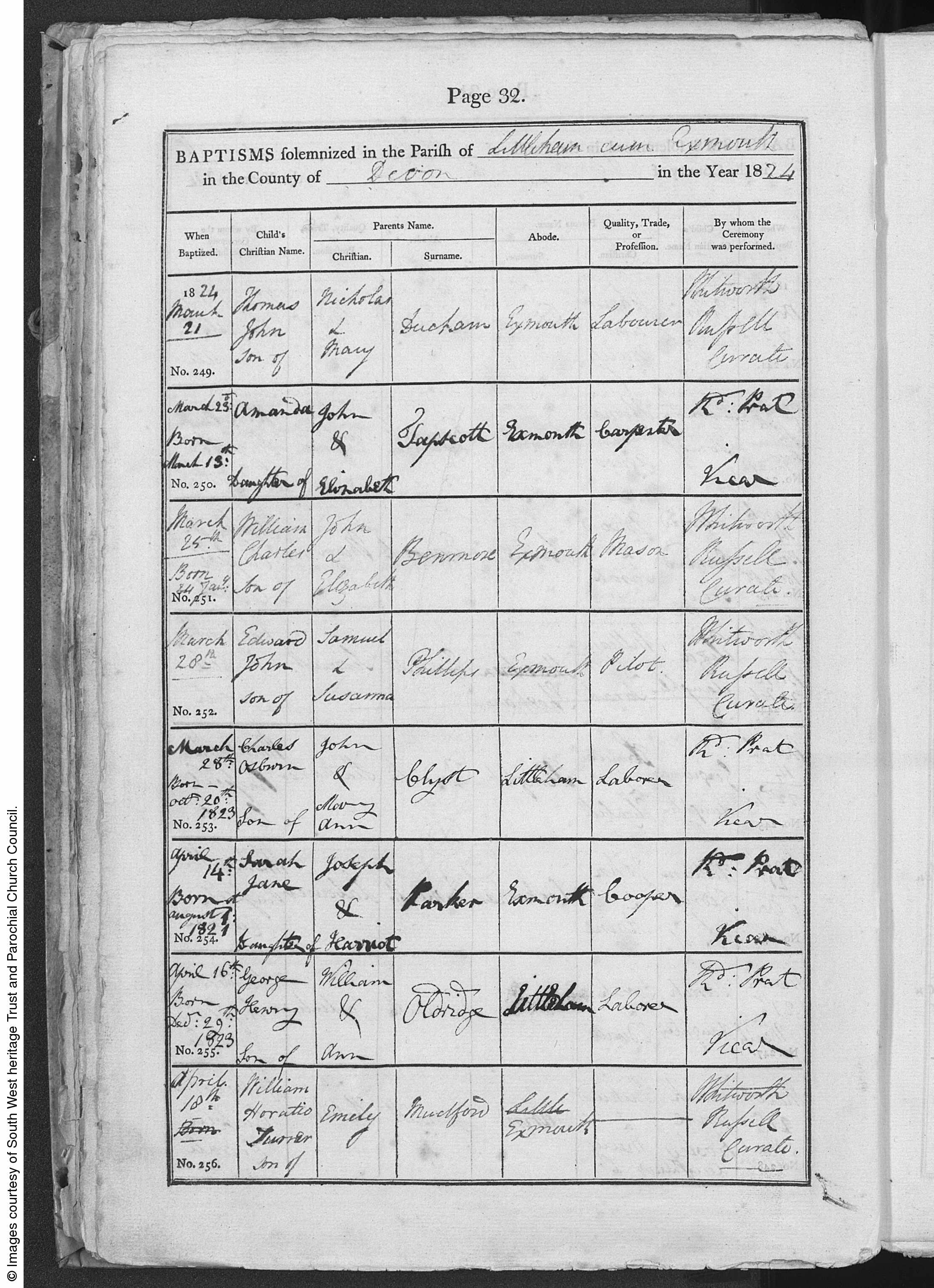 Baptisms in the Parish of Littleham cum Exmouth in the County of Devon.