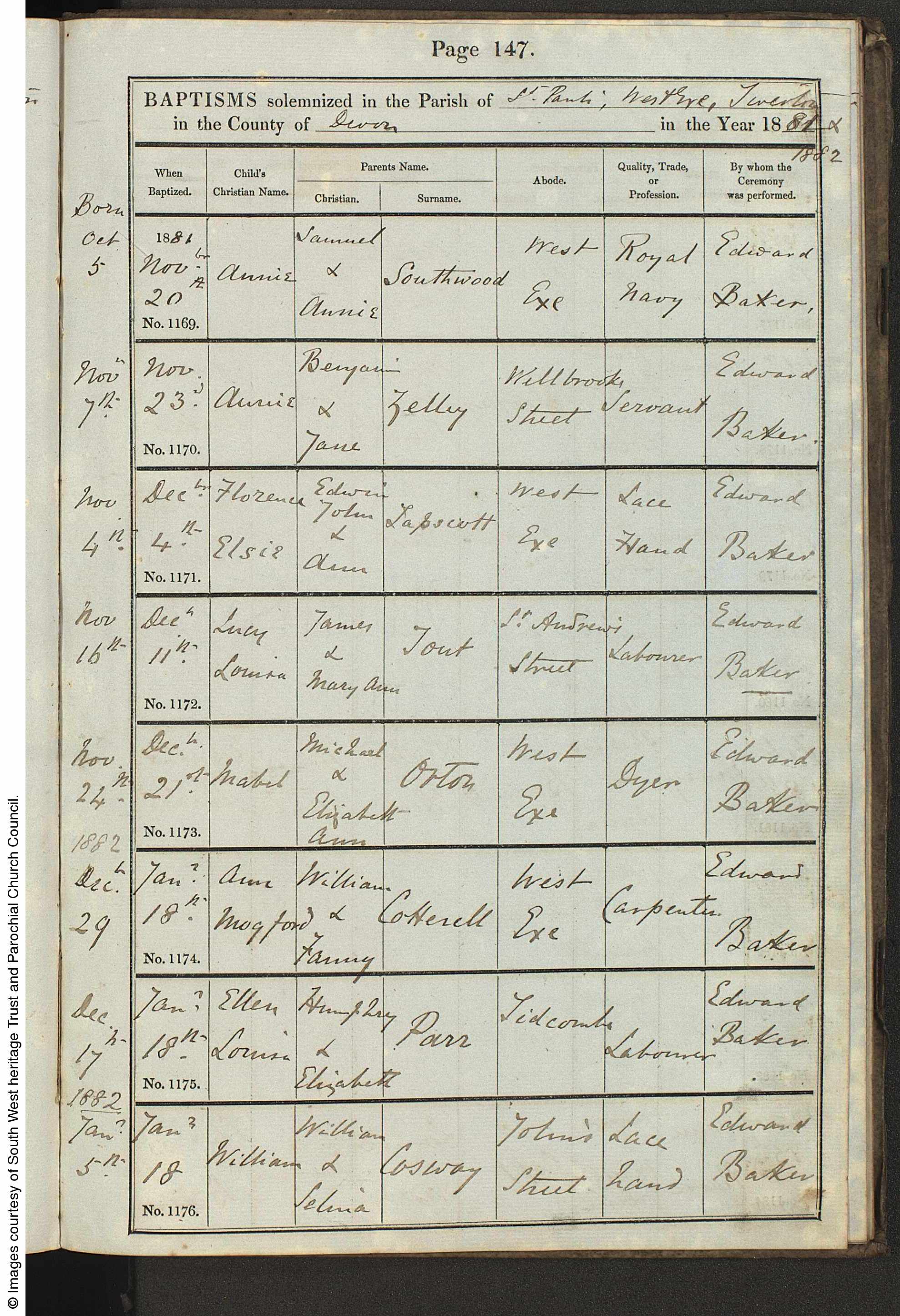 Residence at the time of Marriage: West Exe, Tiverton, Devon, England
