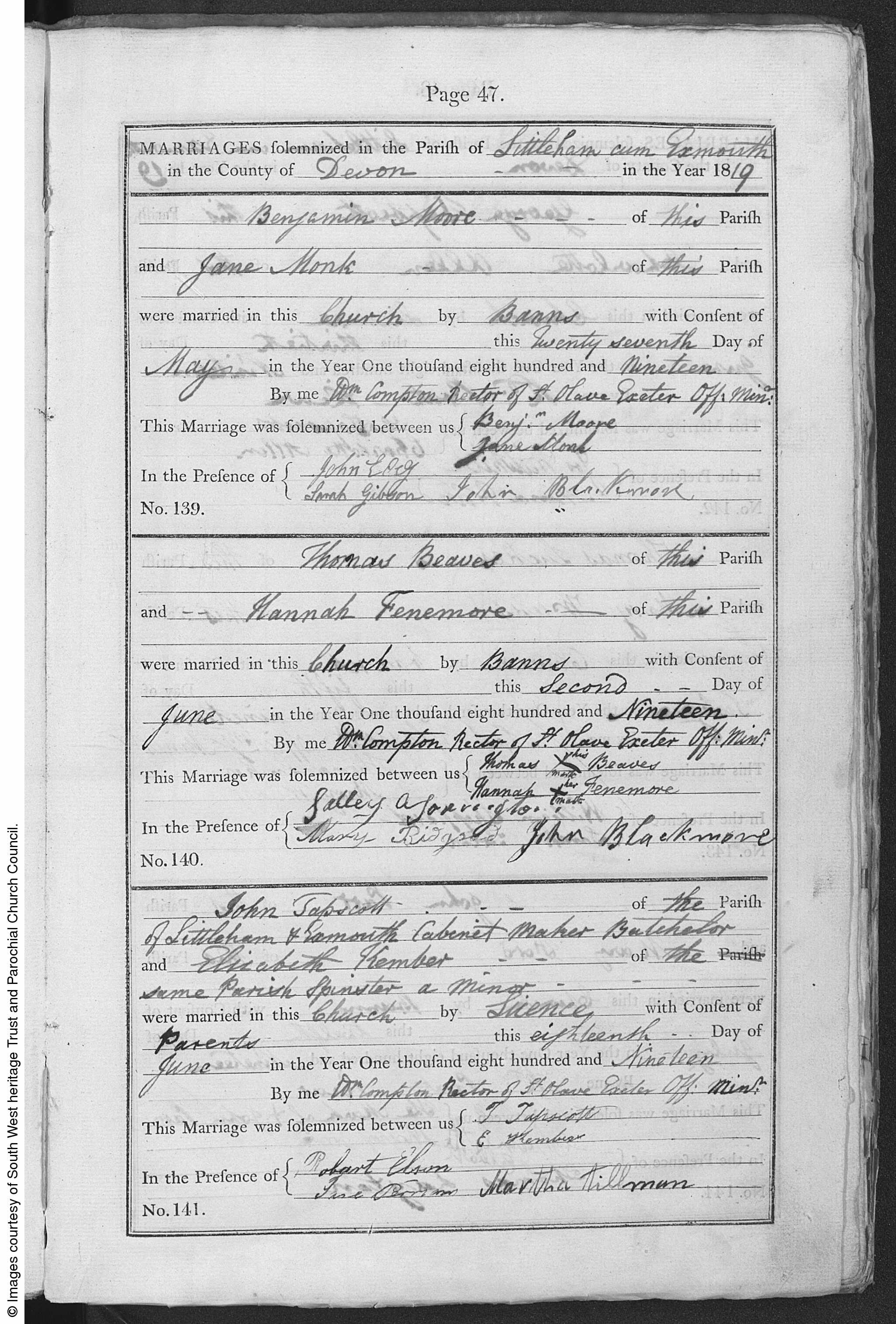 Marriage solemnized in the Parish of Littleham in the Year 1819