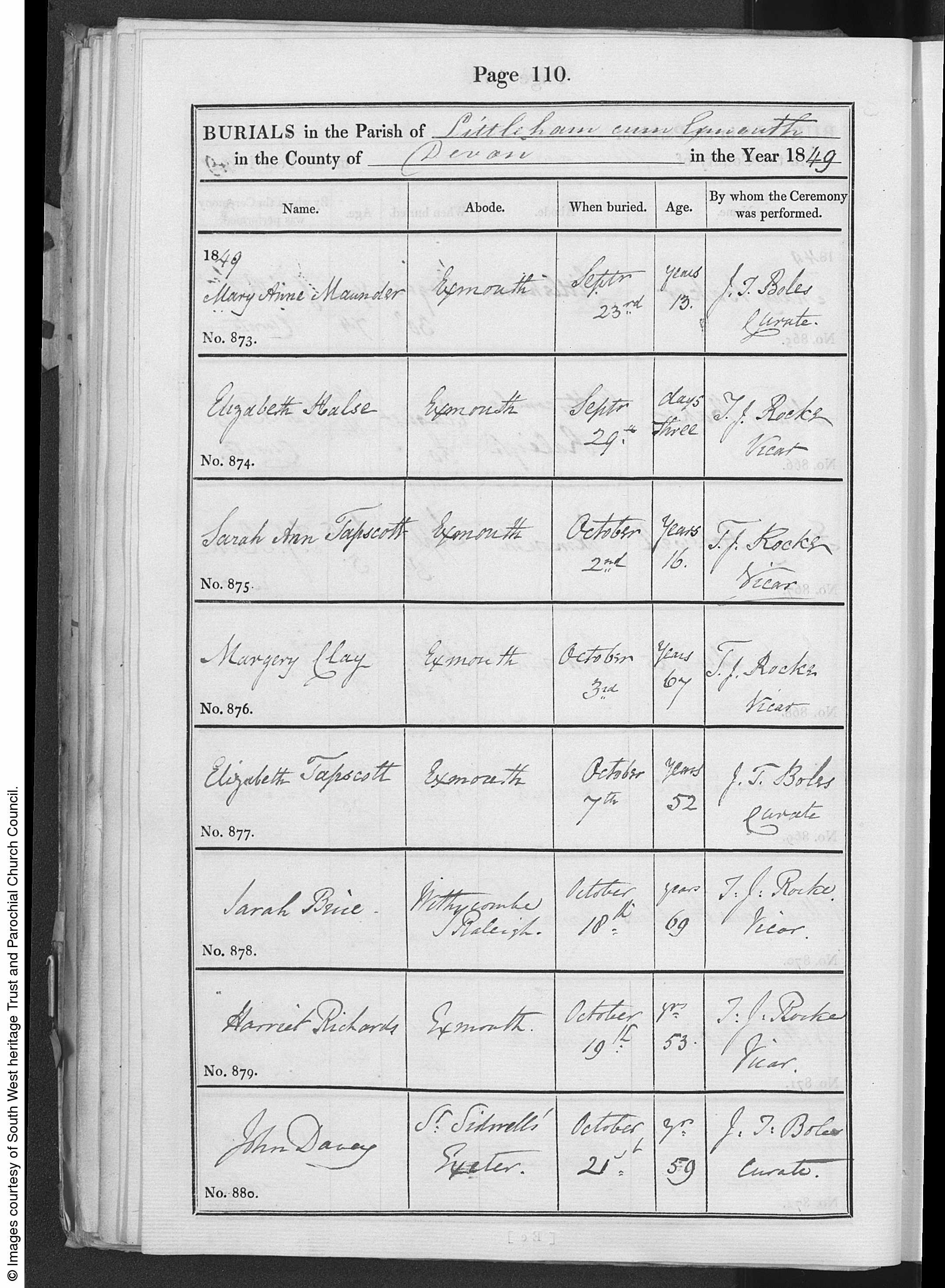 Residence at the time of Marriage: East Budleigh, Devon, England and Budleigh Salterton, Devon, England