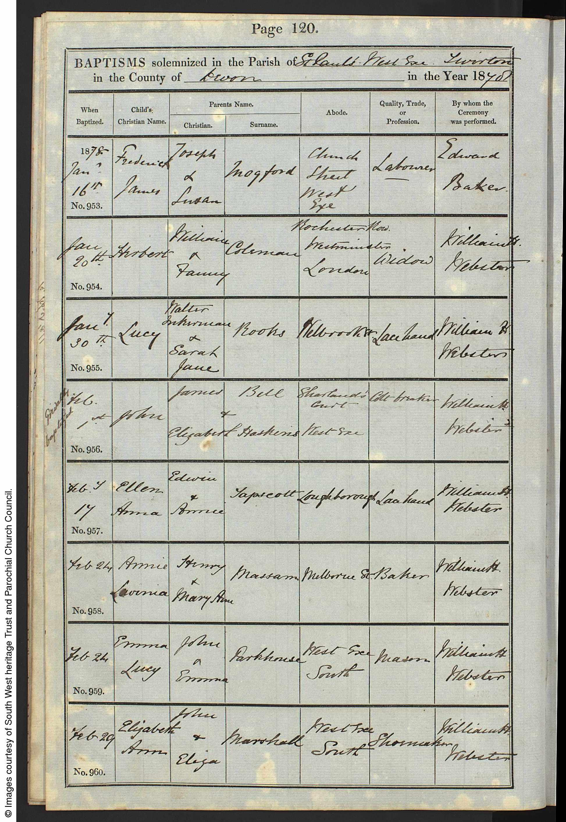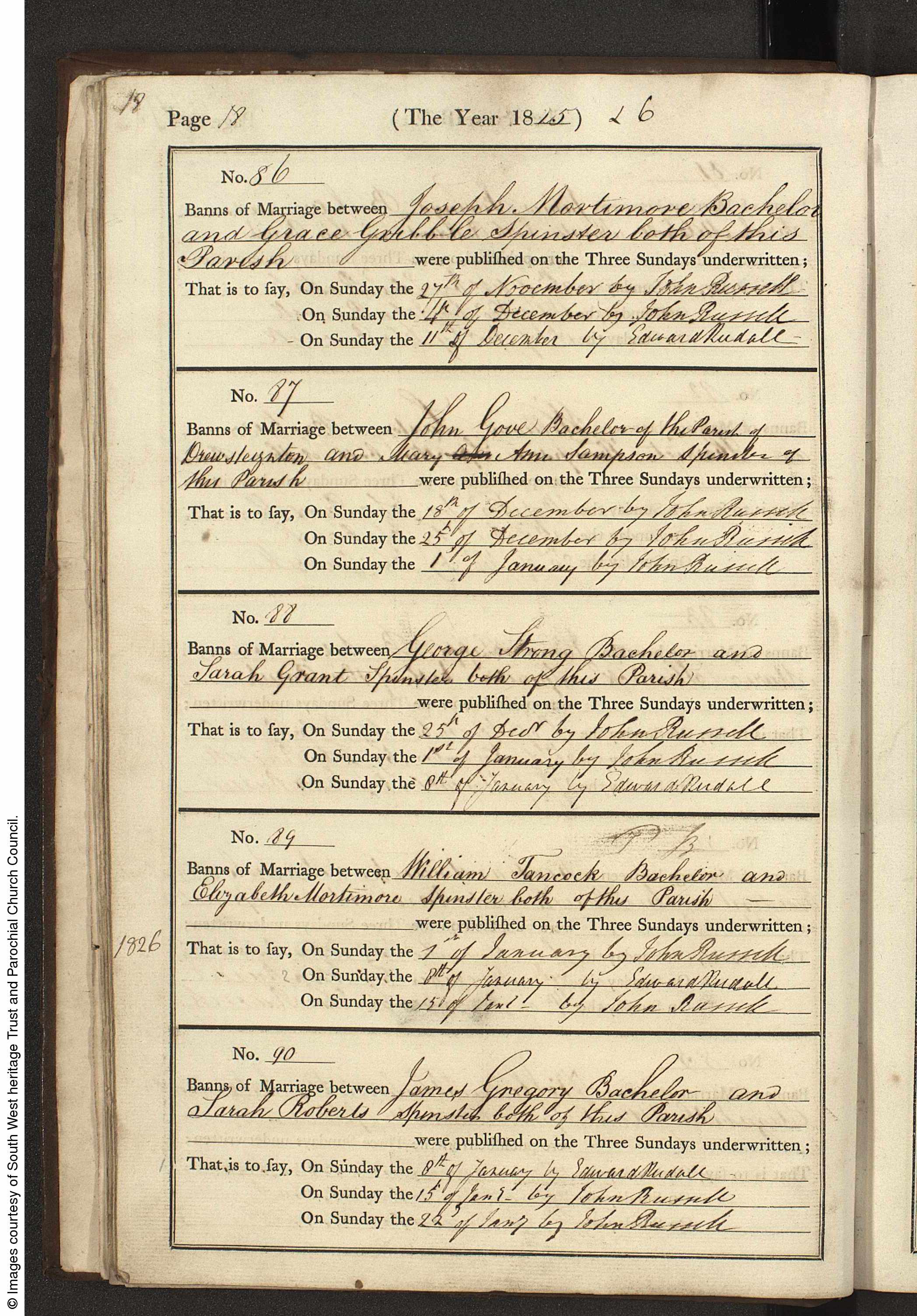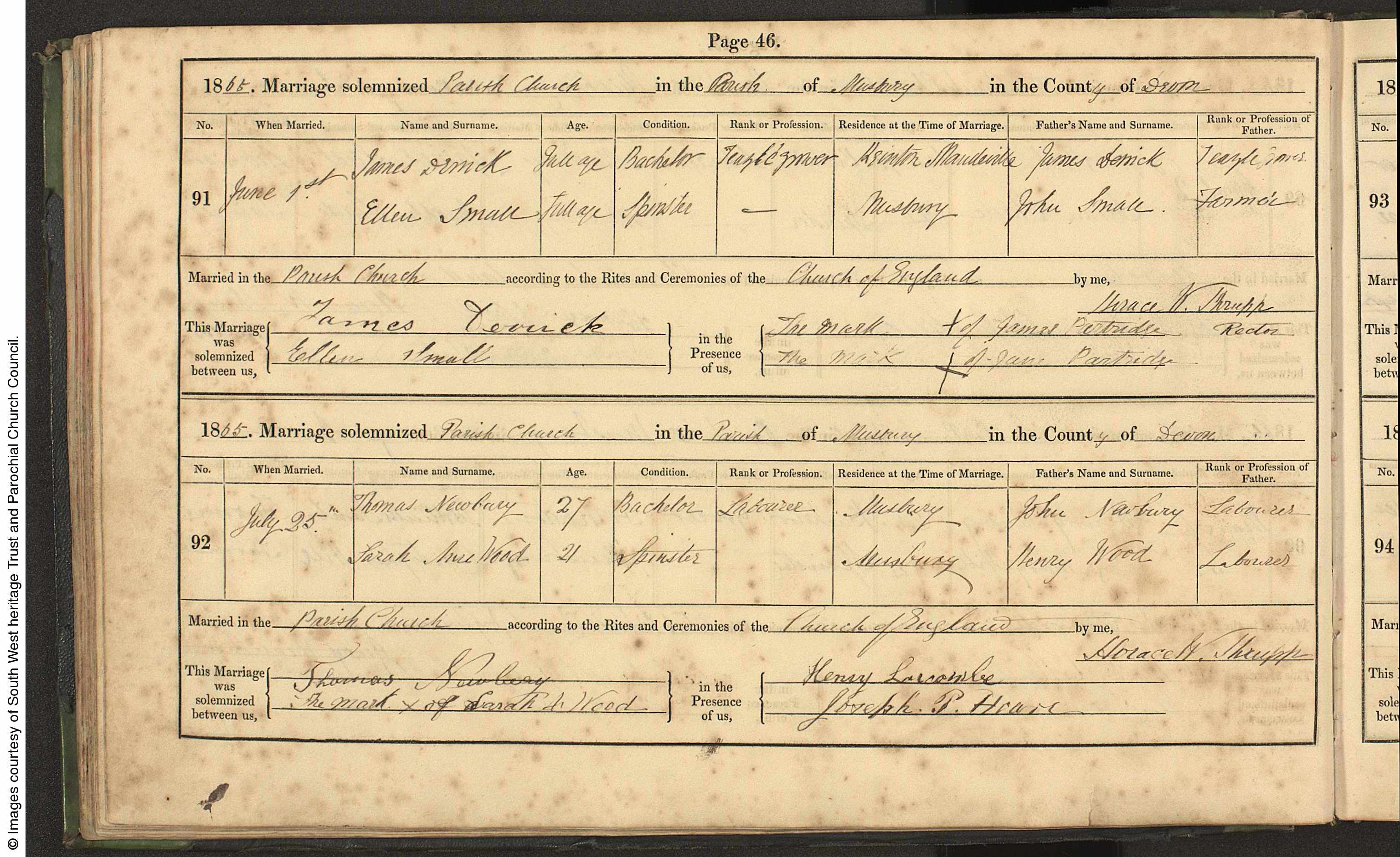 Residence at the time of Marriage: Keinton Mandeville, Somerset, England and Musbury, Devon, England