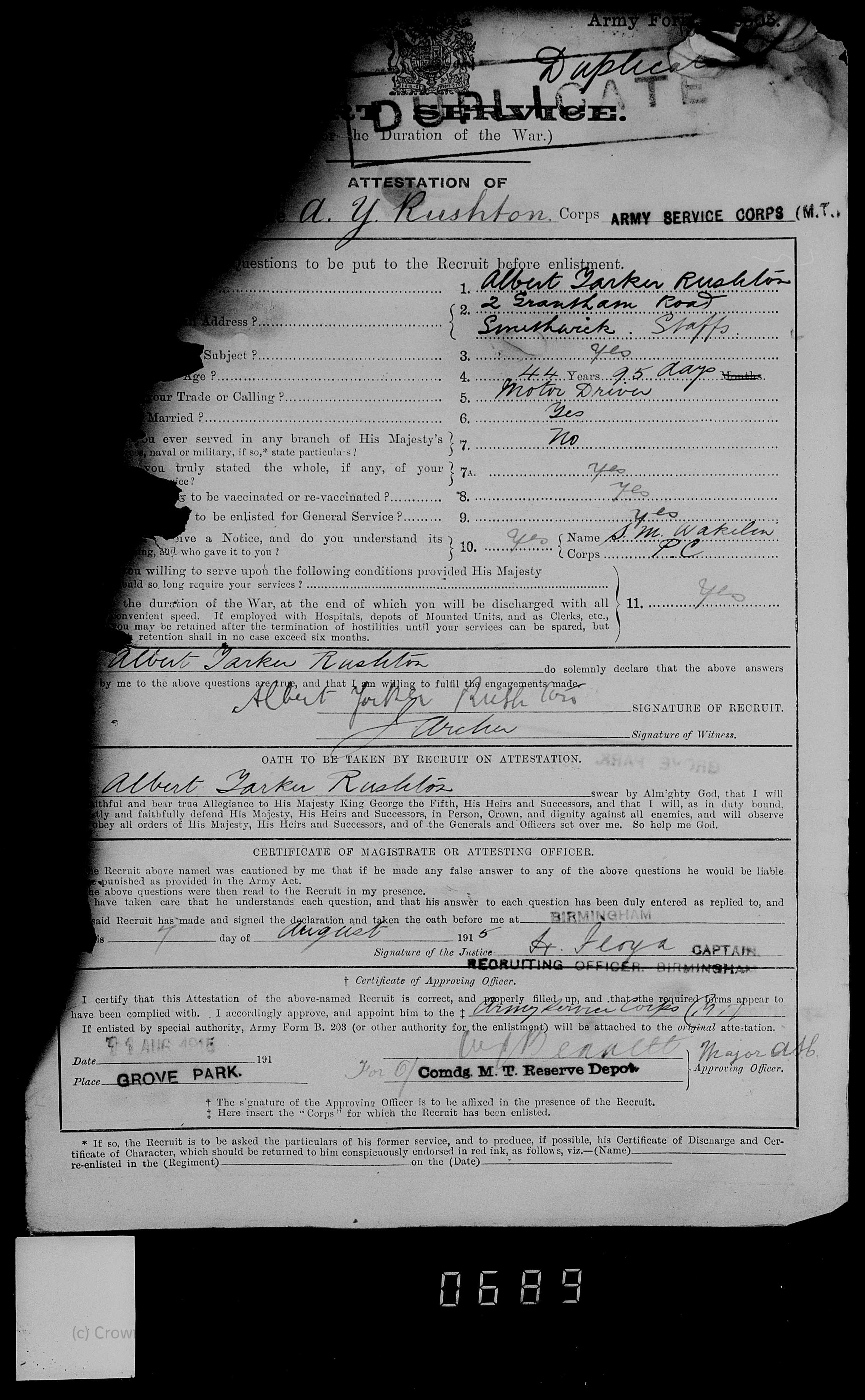 Residence at the time of Marriage: Northcote Lane, Honiton, Devon, England and Warwick Lane, Honiton, Devon, England