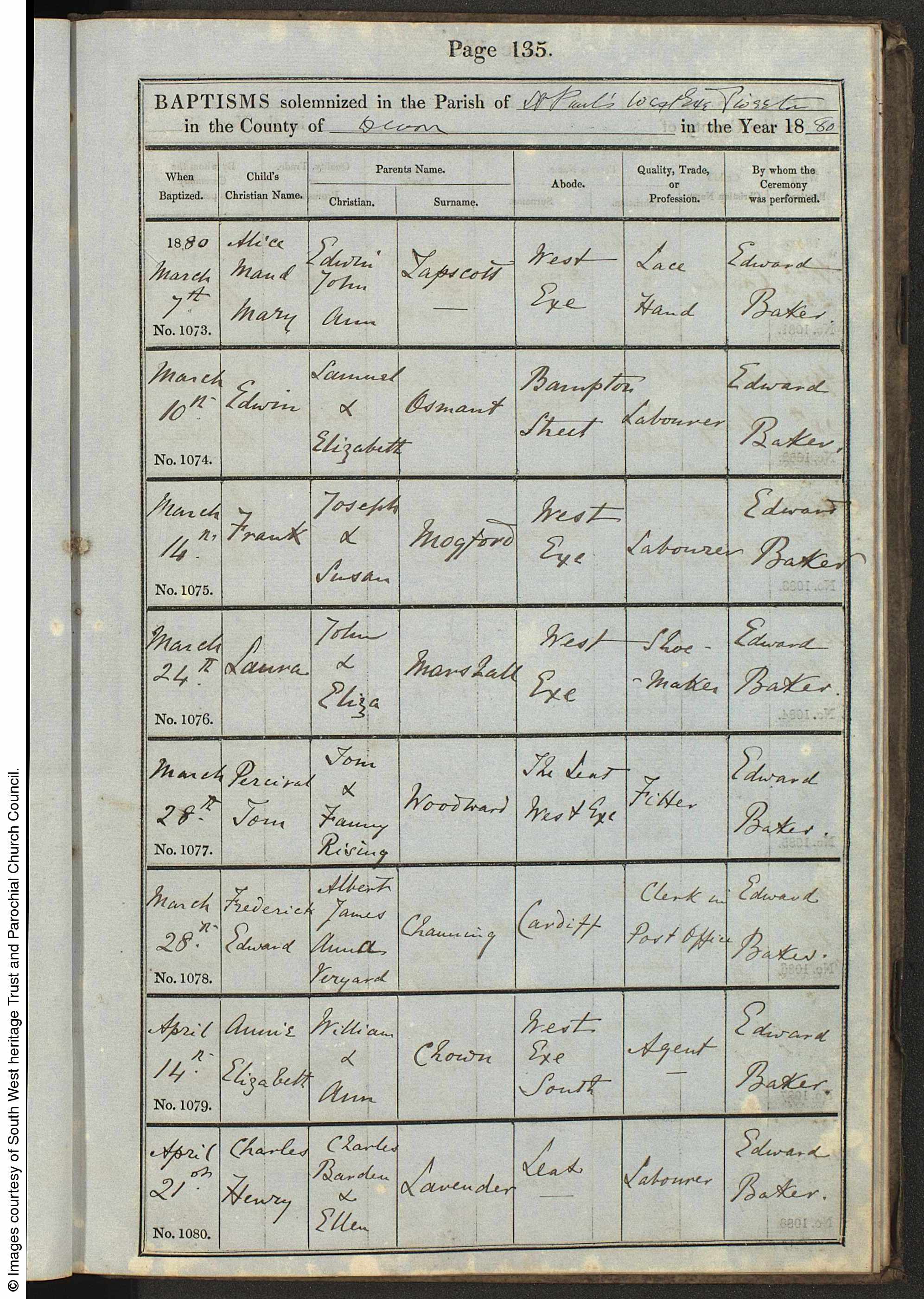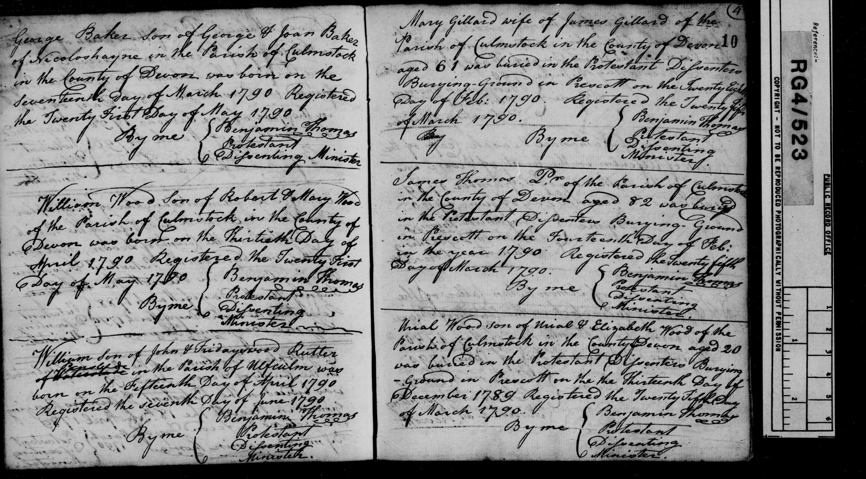 Baptisms solemnized in the Parish of Honiton in the County of Devon.
