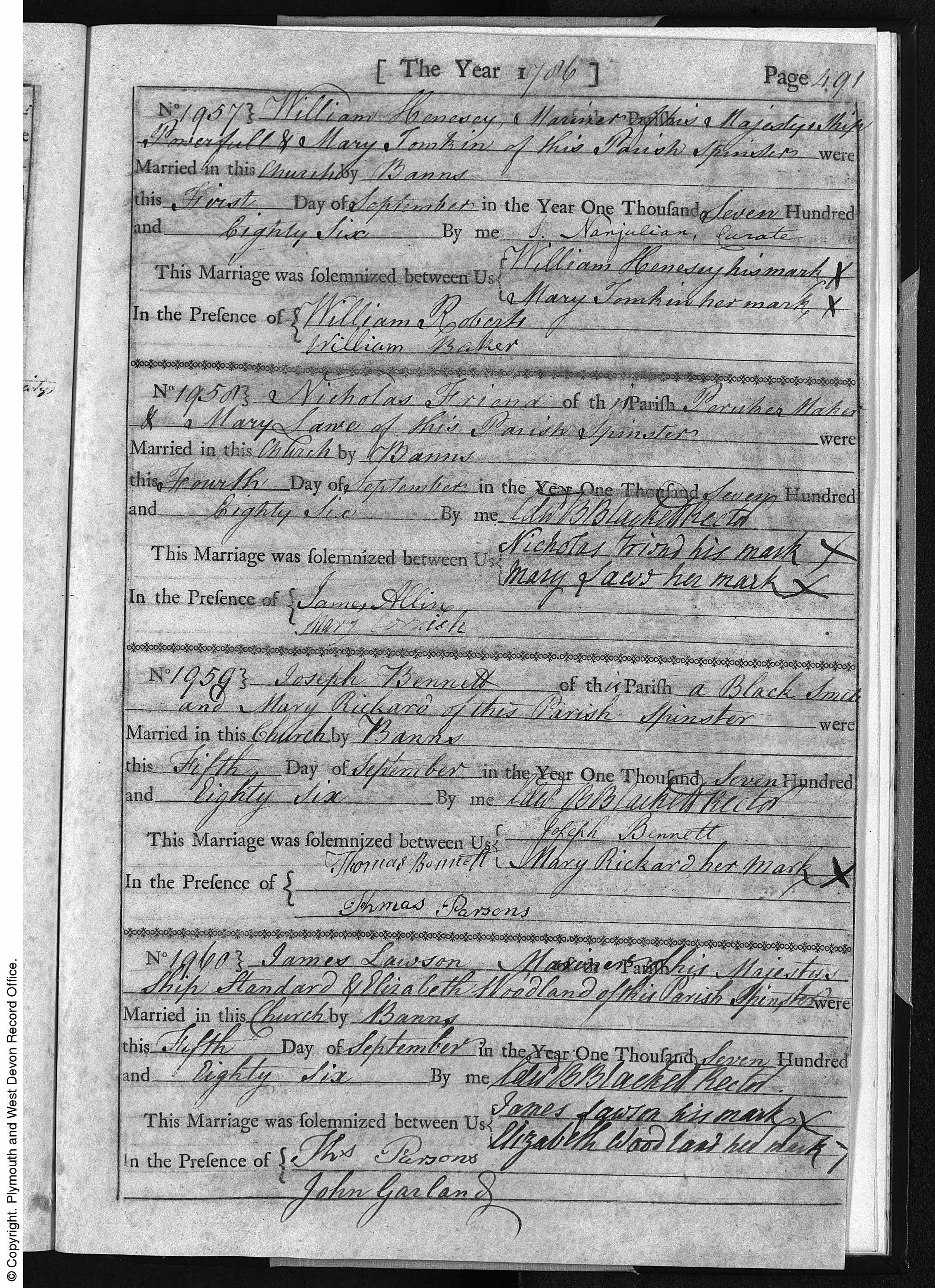Nicholas Friend (his Mark) and Mary Lawe (her Mark)