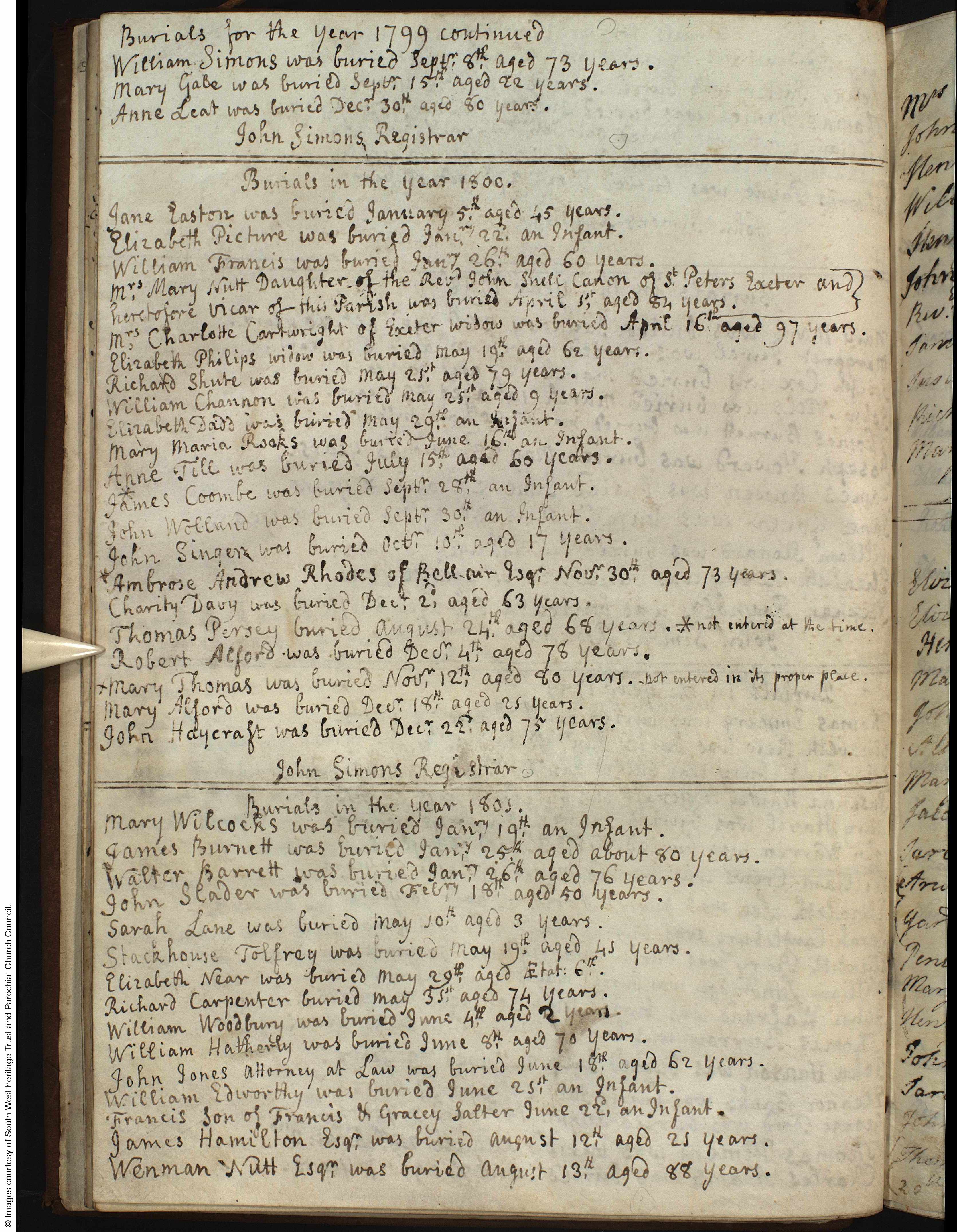 "Mary Thomas was buried Dec 18th, aged 80 years"