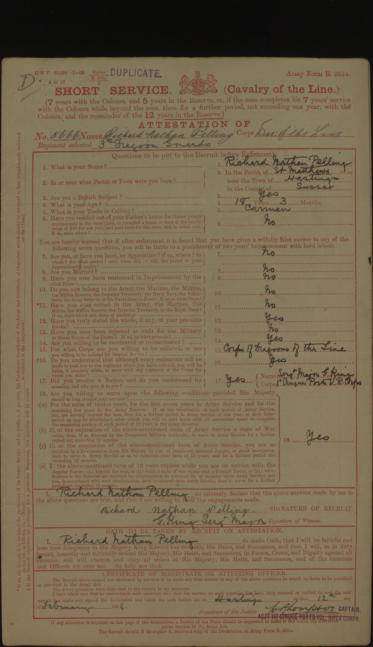 NB. The FMP transcript shows Cliiford's name as Alfred and Dagmar's as ??? but close inspection / enlargement confirms the names as Clifford and Dagmar respectively.
