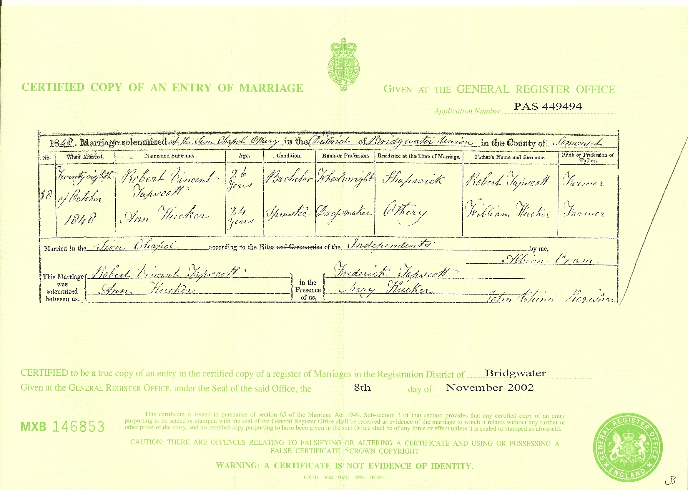 In the presence of Robert Dunk, Ann Dunk, Albert Dunk, George Bourne