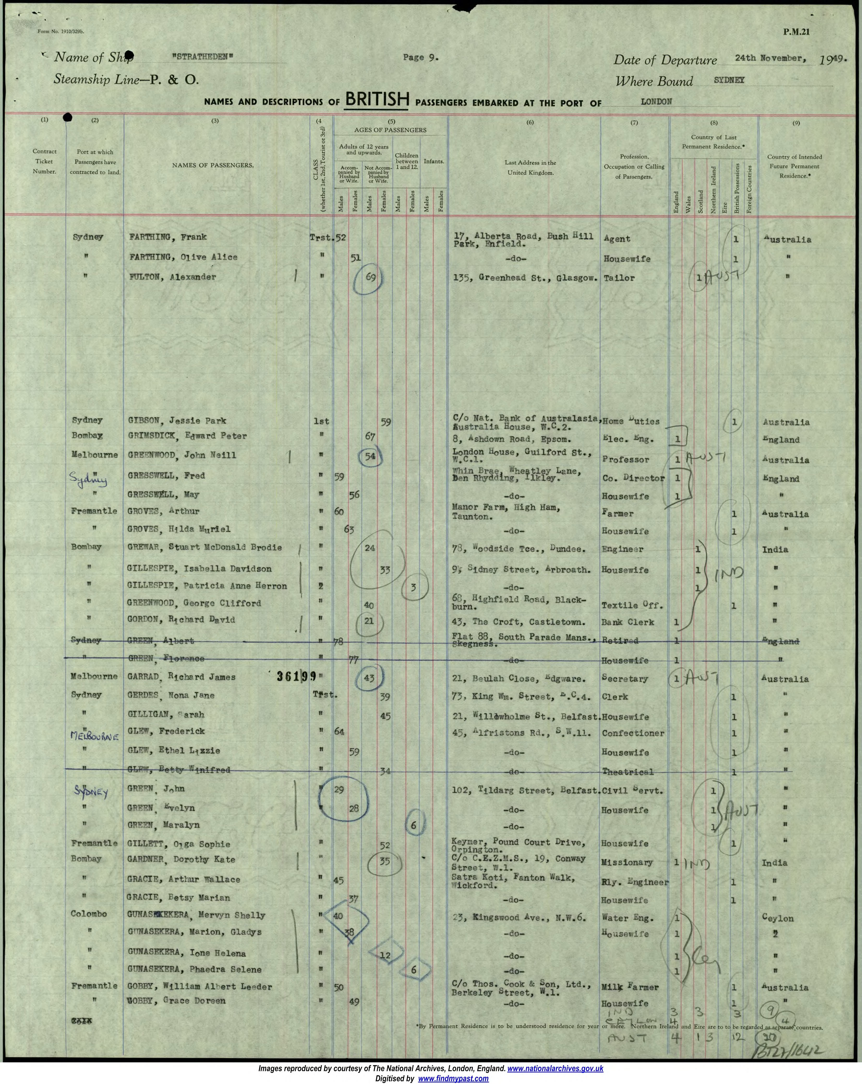 Name of Passenger(s): Arthur Groves with wife Hilda