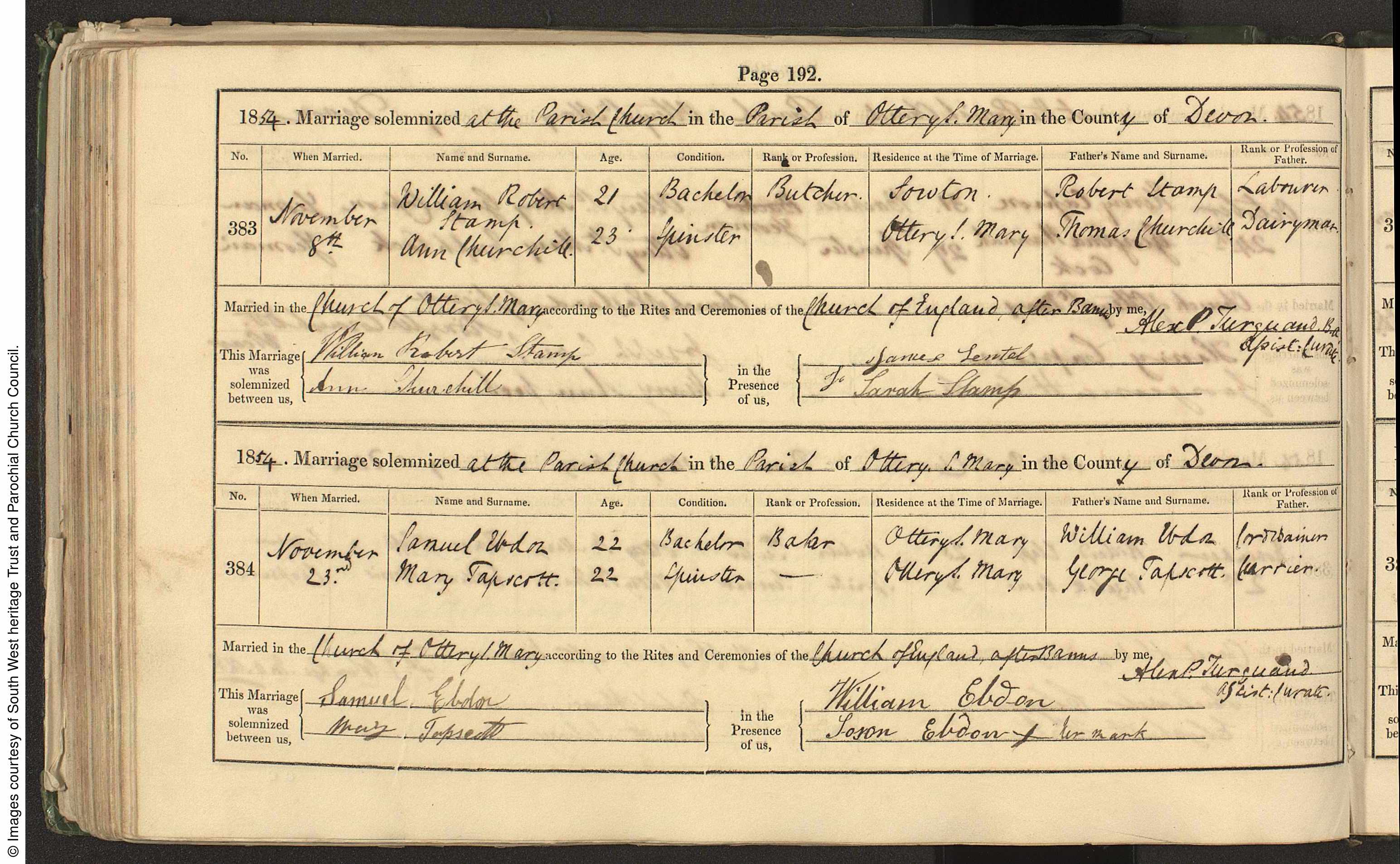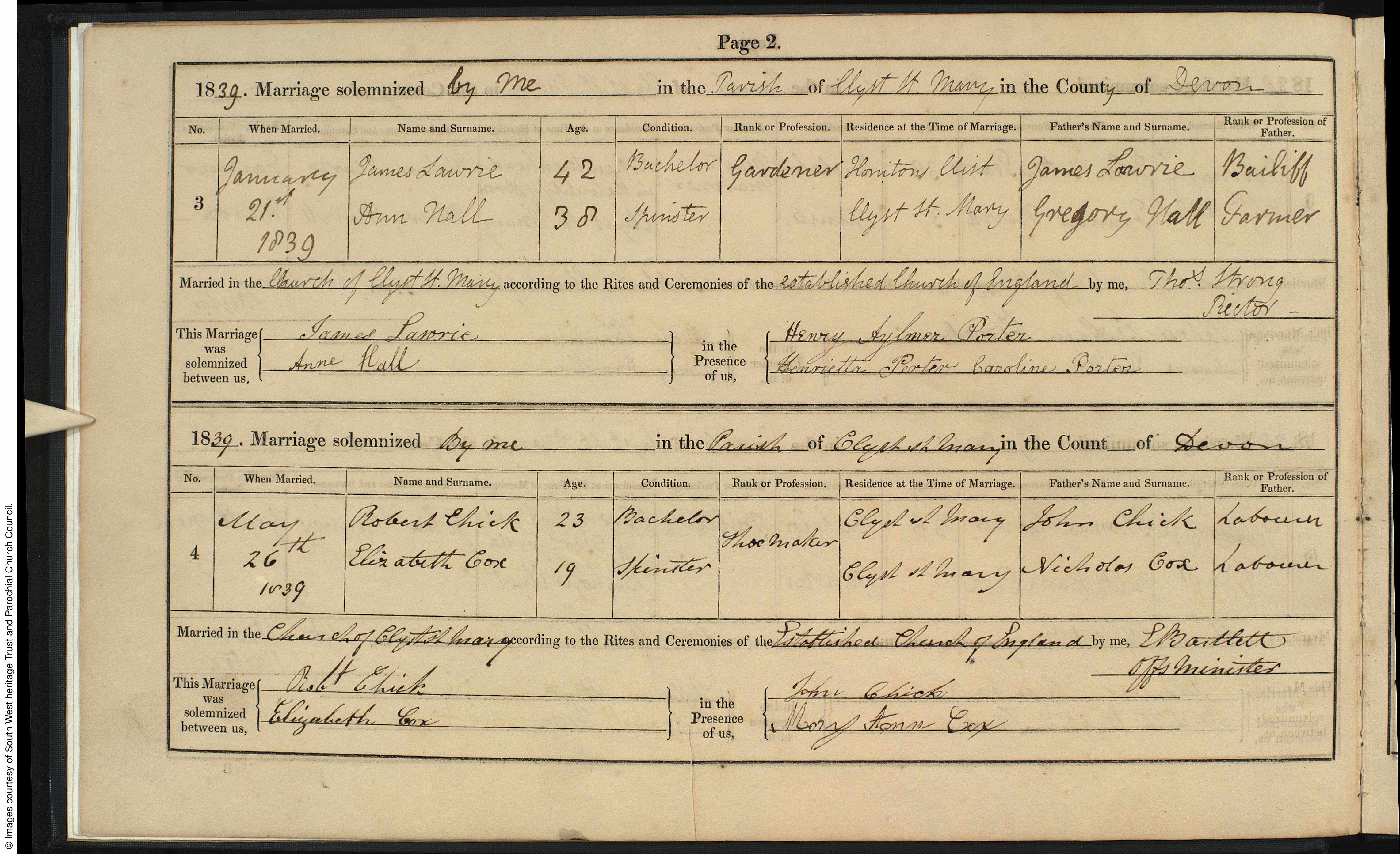 Reference: Somerset Marriage Index; Ref: D/P/MAP 2/1/1