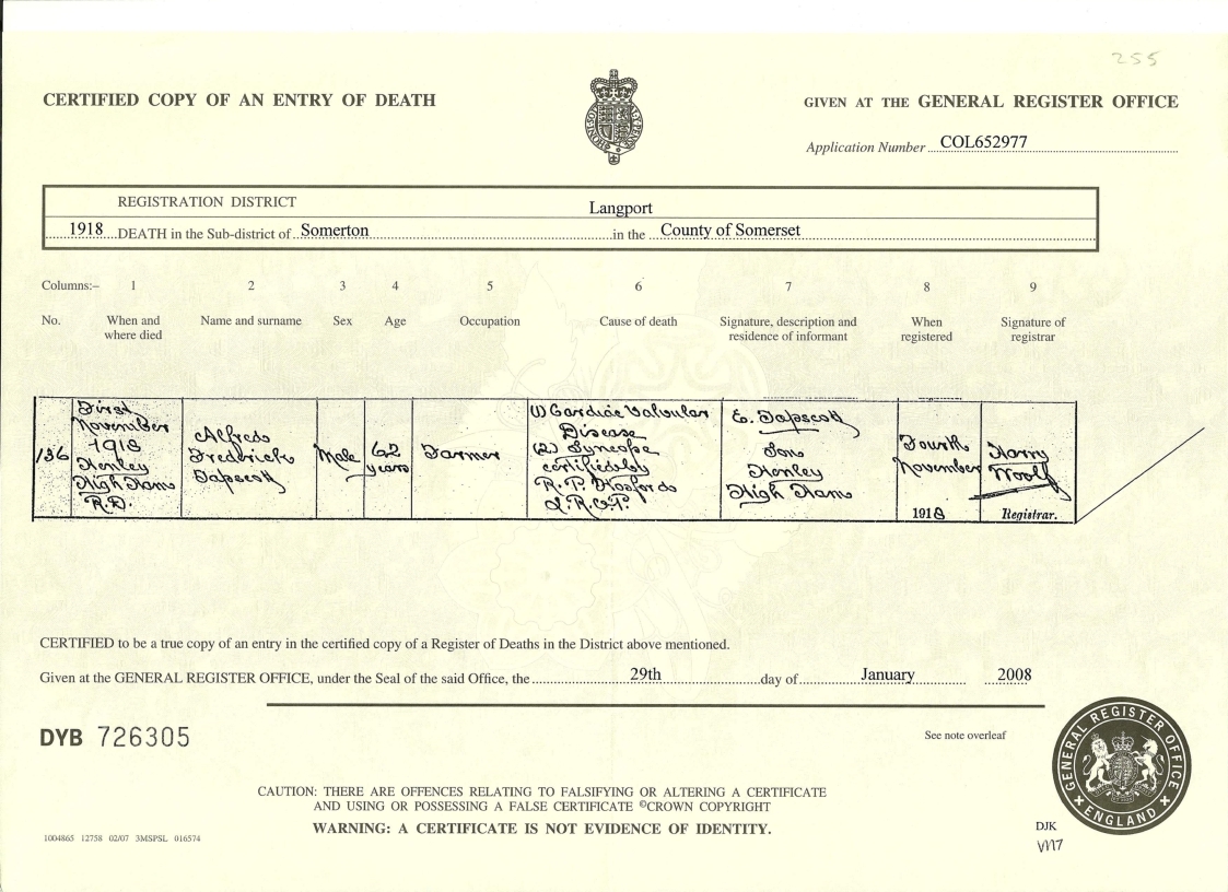 "CAME, Ella Ada Mary of 29 Quantock Rd, Bridgwater, Somerset died 9 May 1974. Administration Bristol 22 Augustl £792 740712272F"