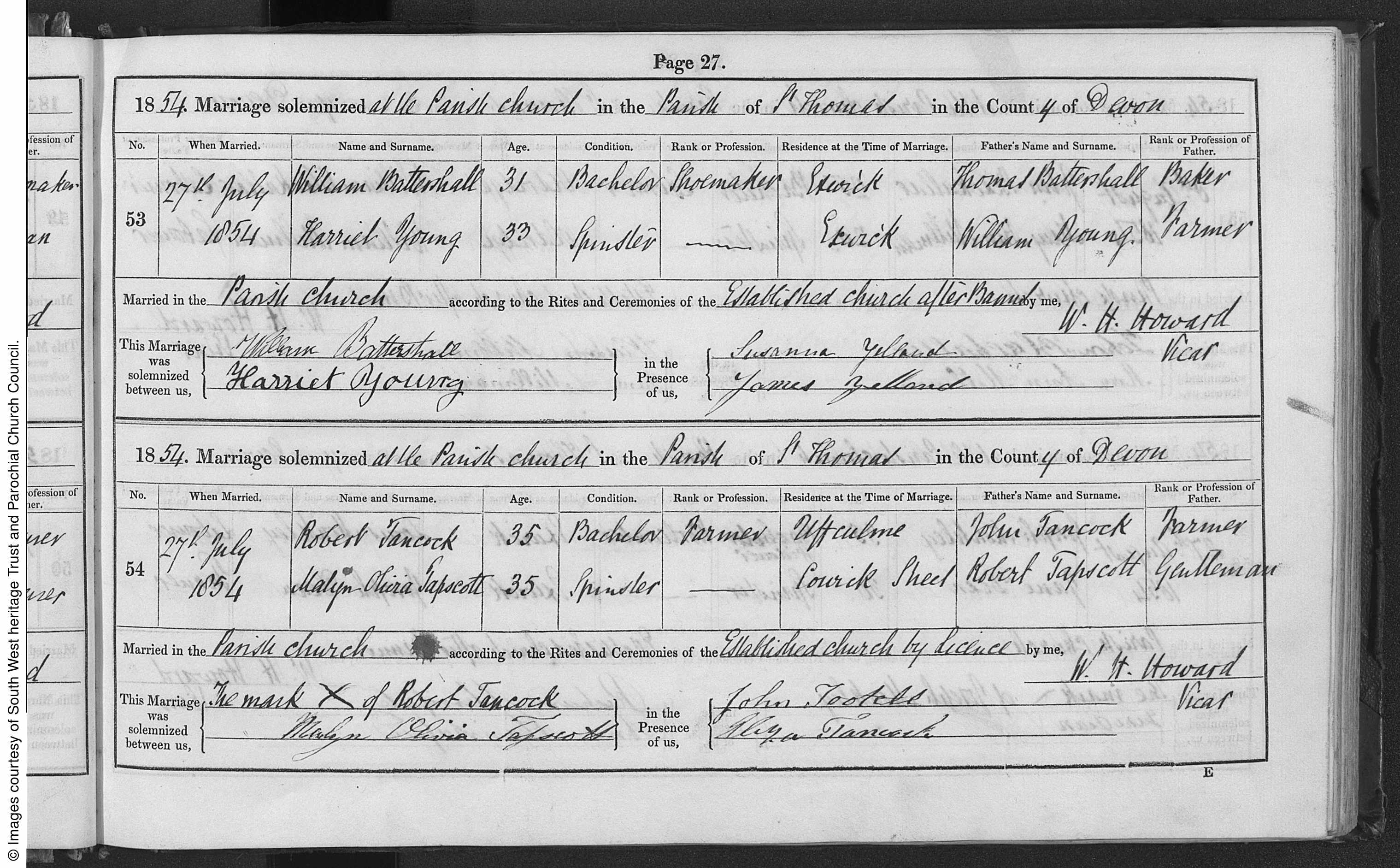Reference: Somerset Marriage Index; Ref: D/P/TAU M 2/1/22